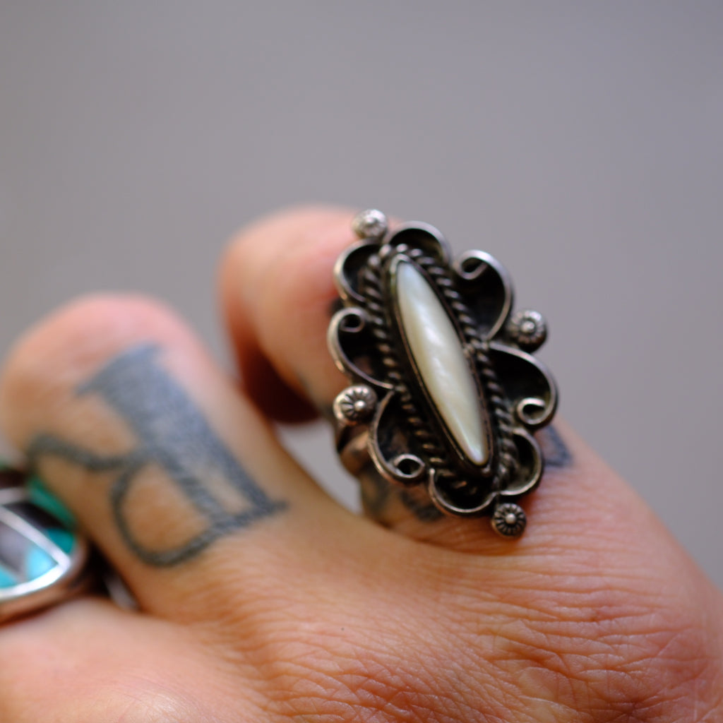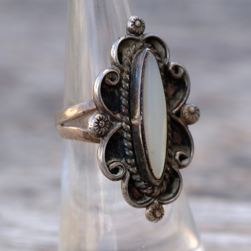 Vintage Sterling Mother Of Pearl Ring