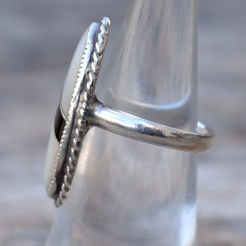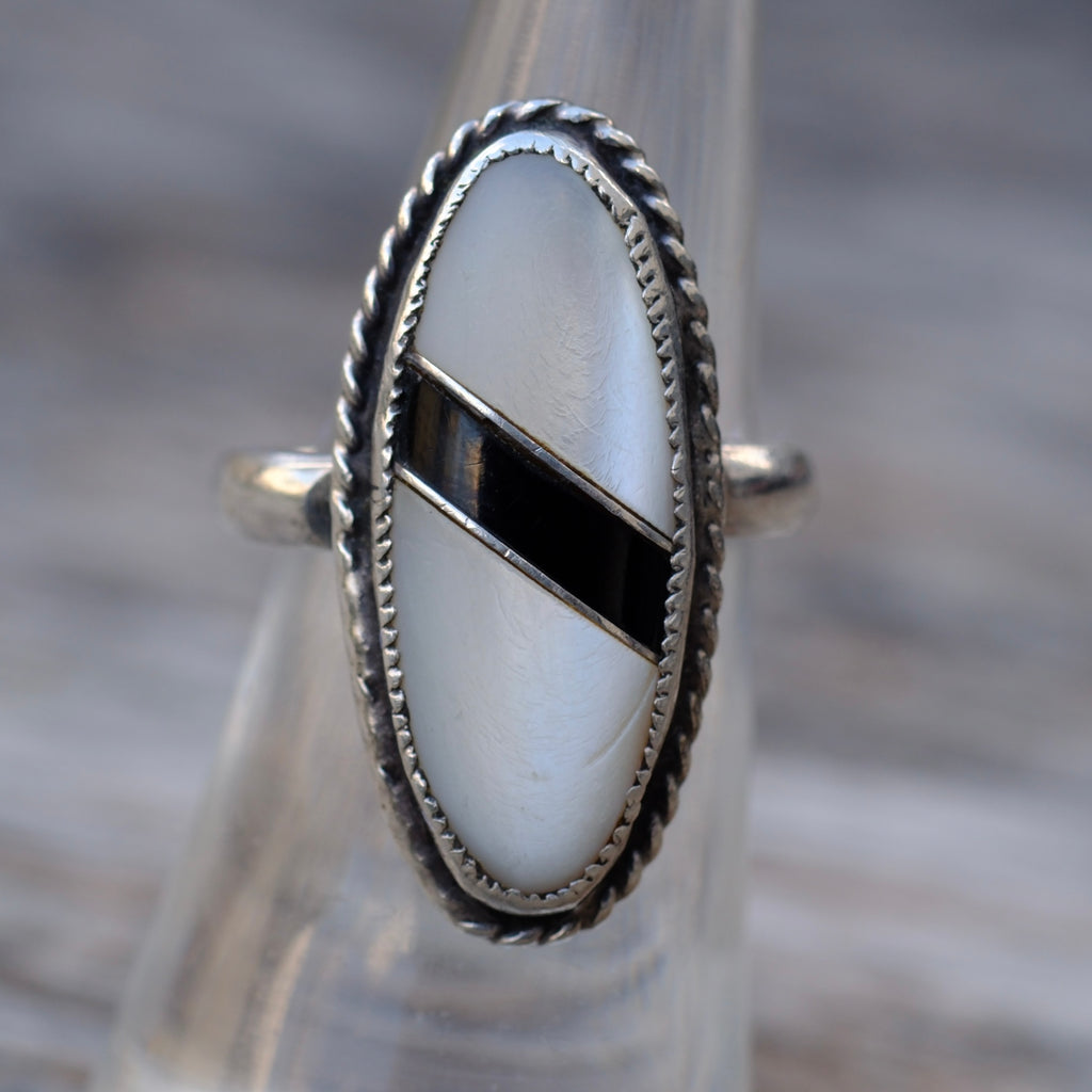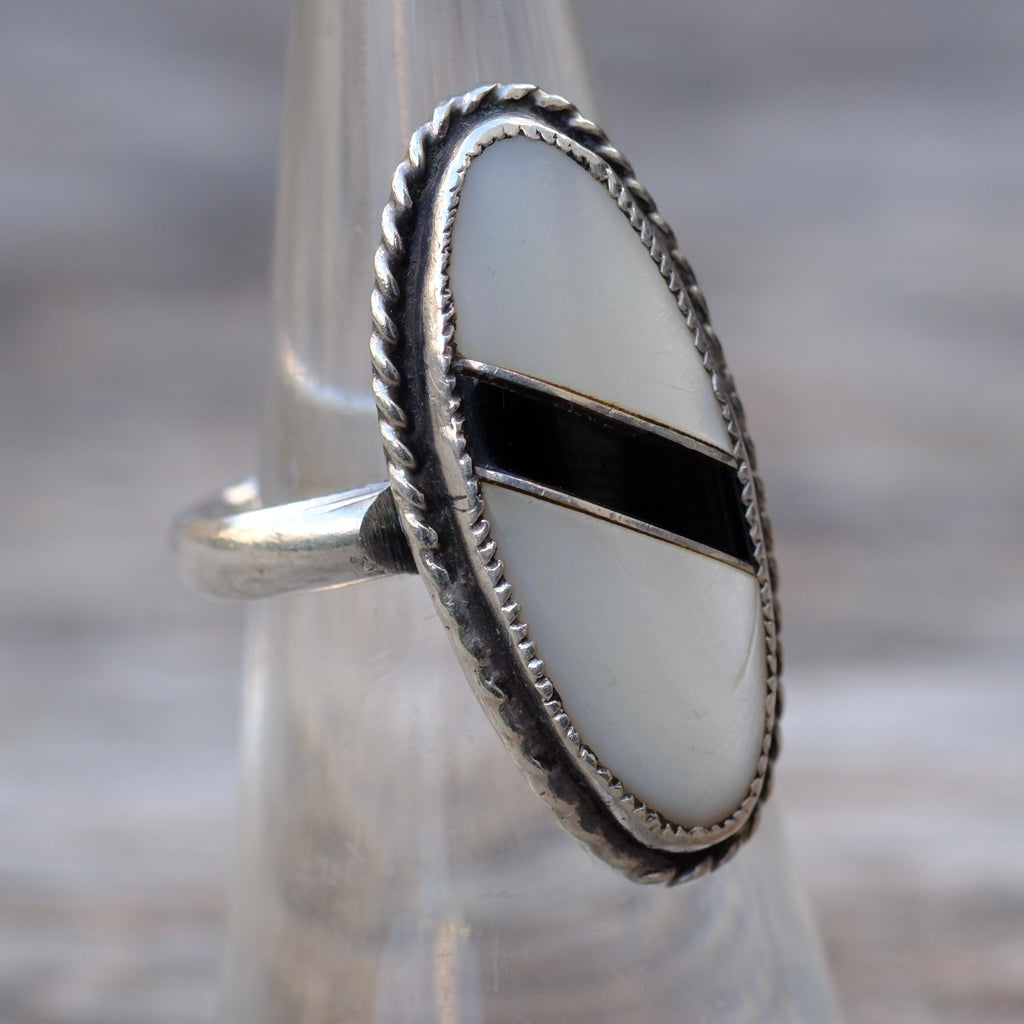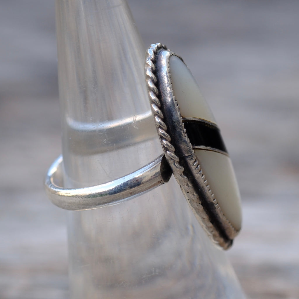 Vintage Sterling Onyx and Mother Of Pearl Inlay Ring 6