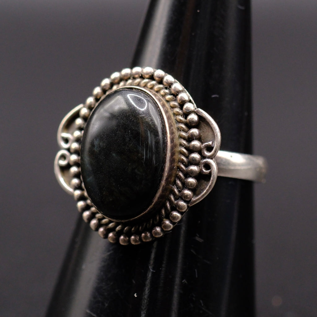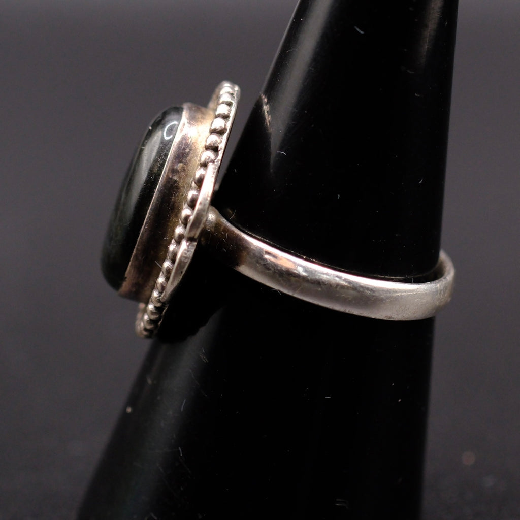 Vintage Sterling Shimmering Blue Resin Ring 7.5