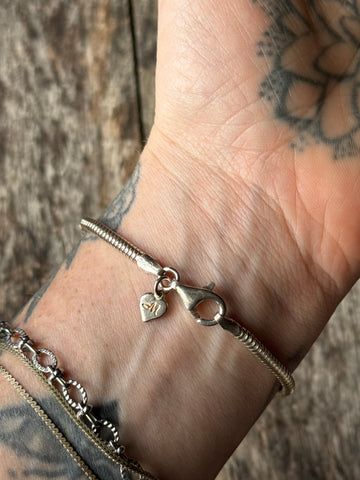 Vintage Sterling Silver Snake Chain Bracelet with a Heart-Shaped ‘M’ Charm