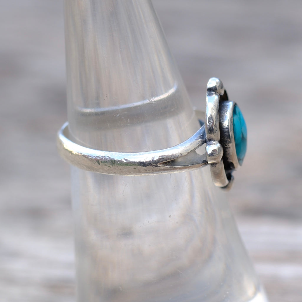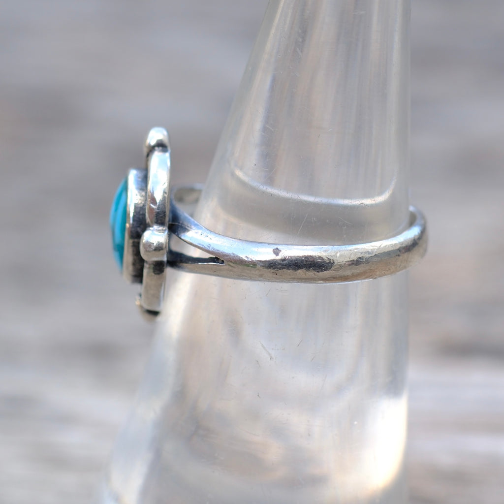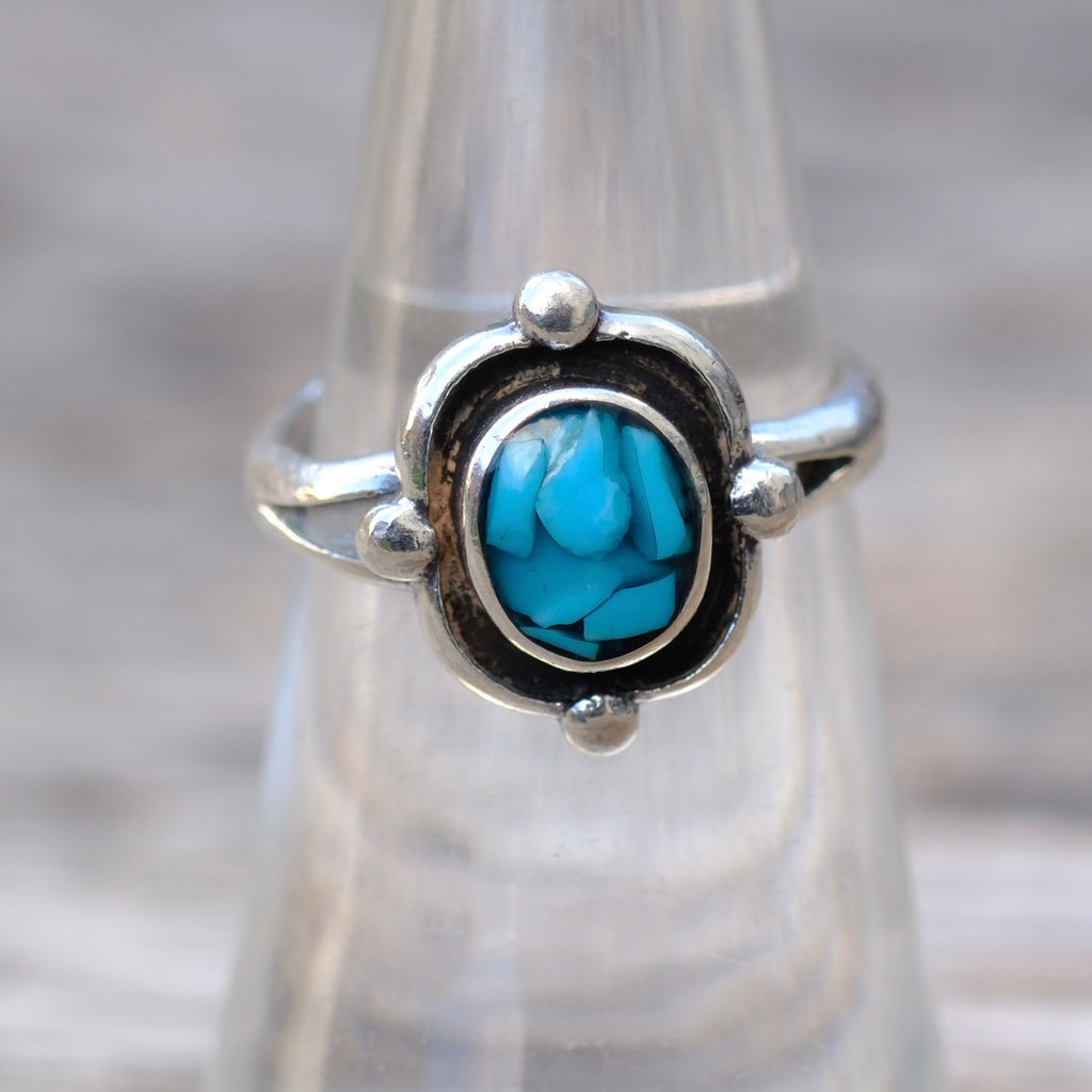 Vintage Sterling Turquoise Chip Inlay Ring 6