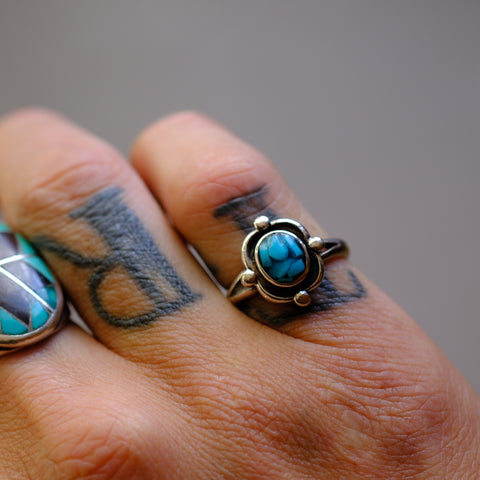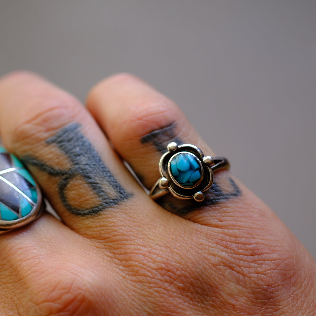 Vintage Sterling Turquoise Chip Inlay Ring
