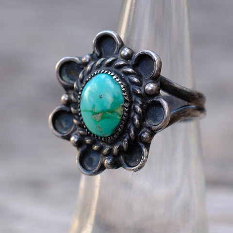 Vintage Sterling Turquoise Florette Ring 5