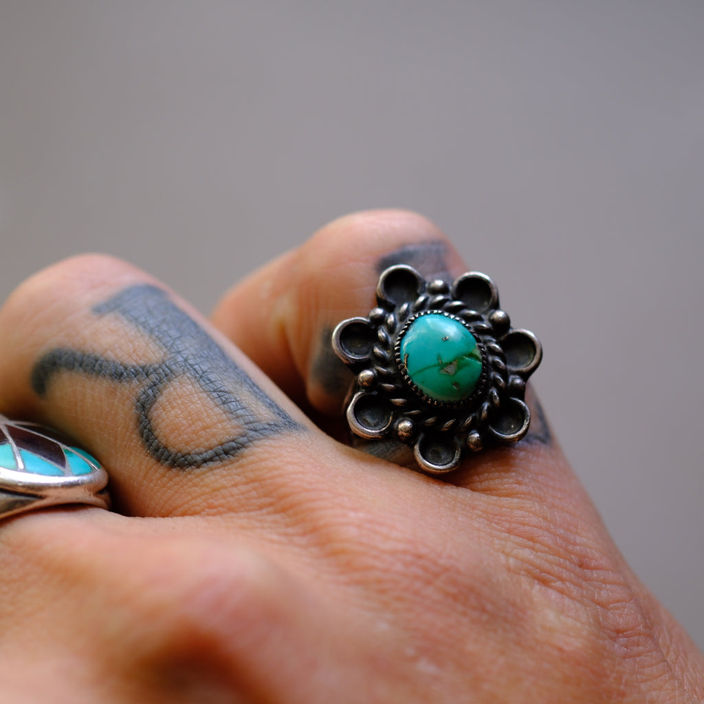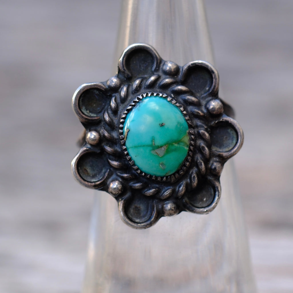 Vintage Sterling Turquoise Florette Ring