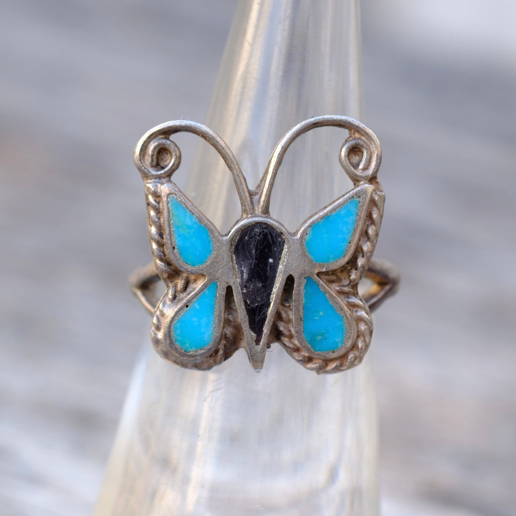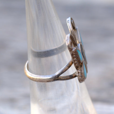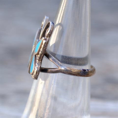 Vintage Sterling Turquoise Inlay Butterfly Ring 5.5