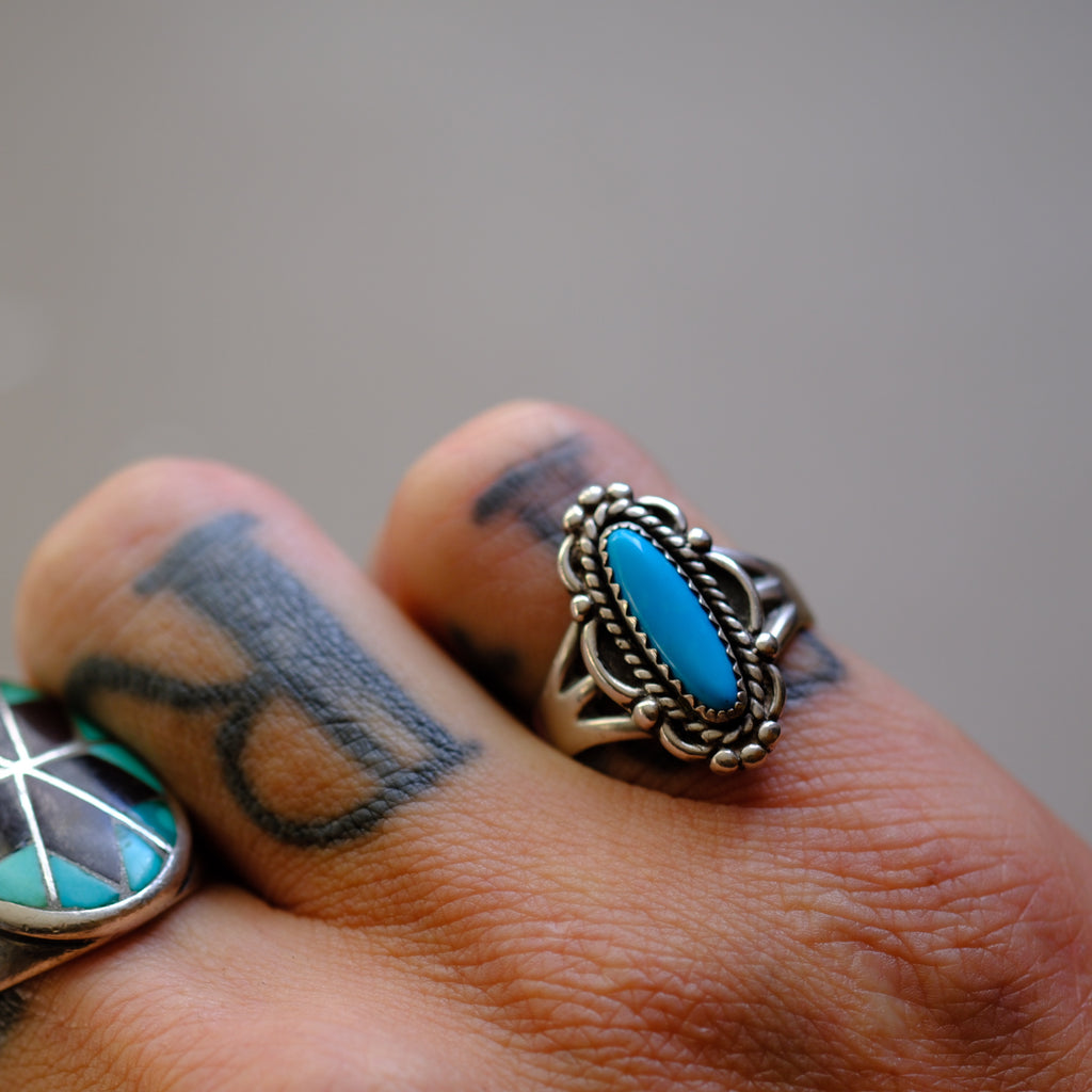 Vintage Sterling Turquoise Ring 7.5