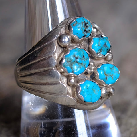 Vintage Sterling 5-Stone Turquoise Cluster Ring 10.5