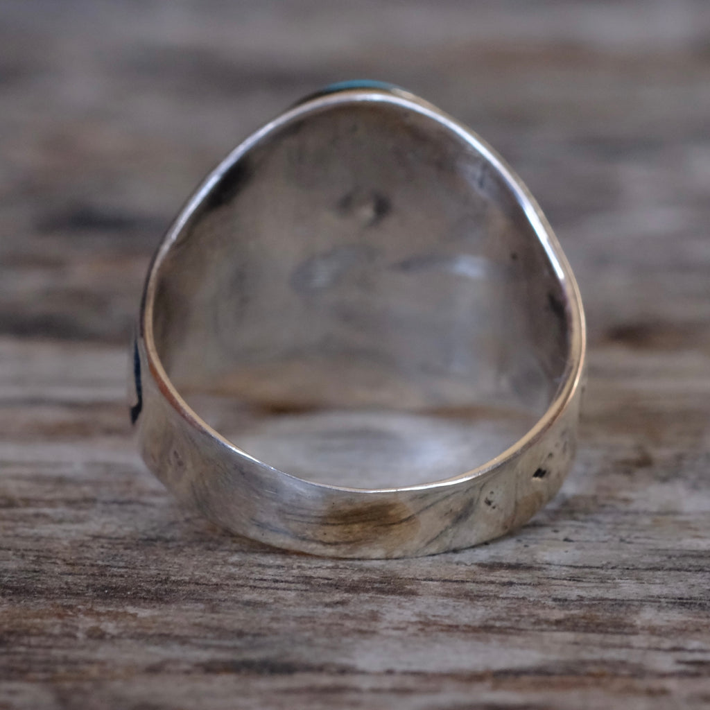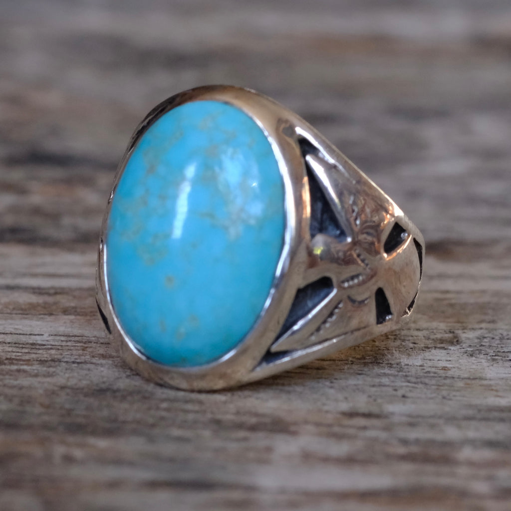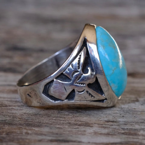 Vintage Sterling Turquoise Thunderbird Ring 9.75