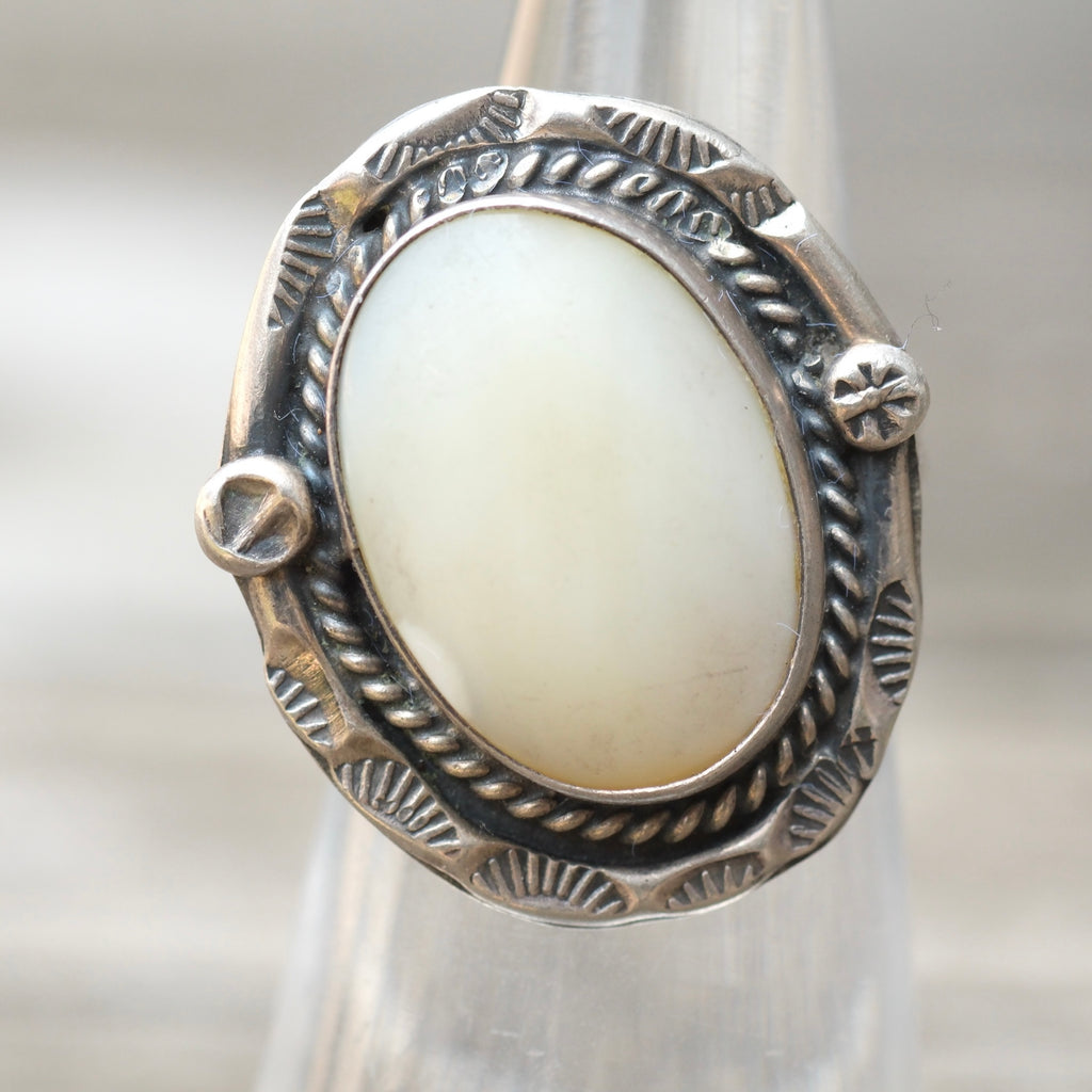 Vintage Sterling Mother Of Pearl Roper Ring 5