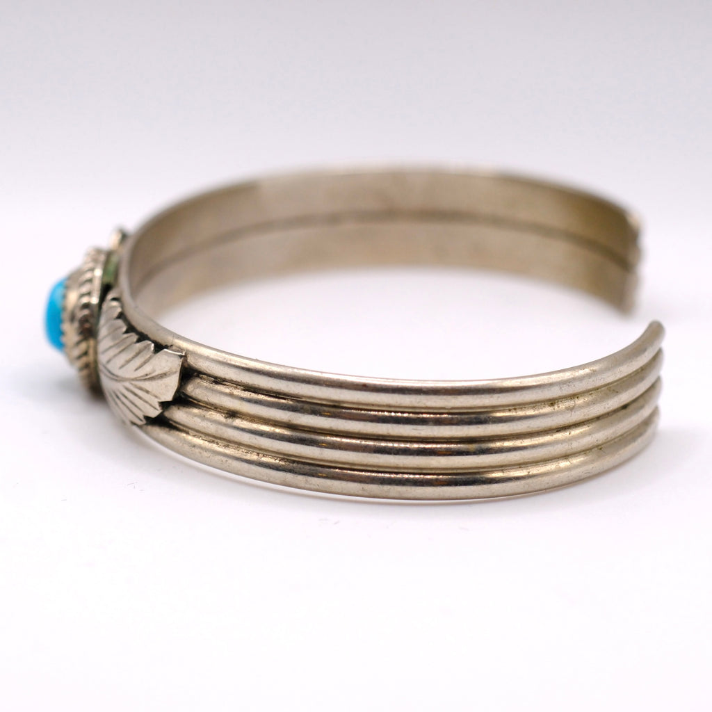 Vintage Sterling Turquoise and Coral Feather Cuff Bracelet
