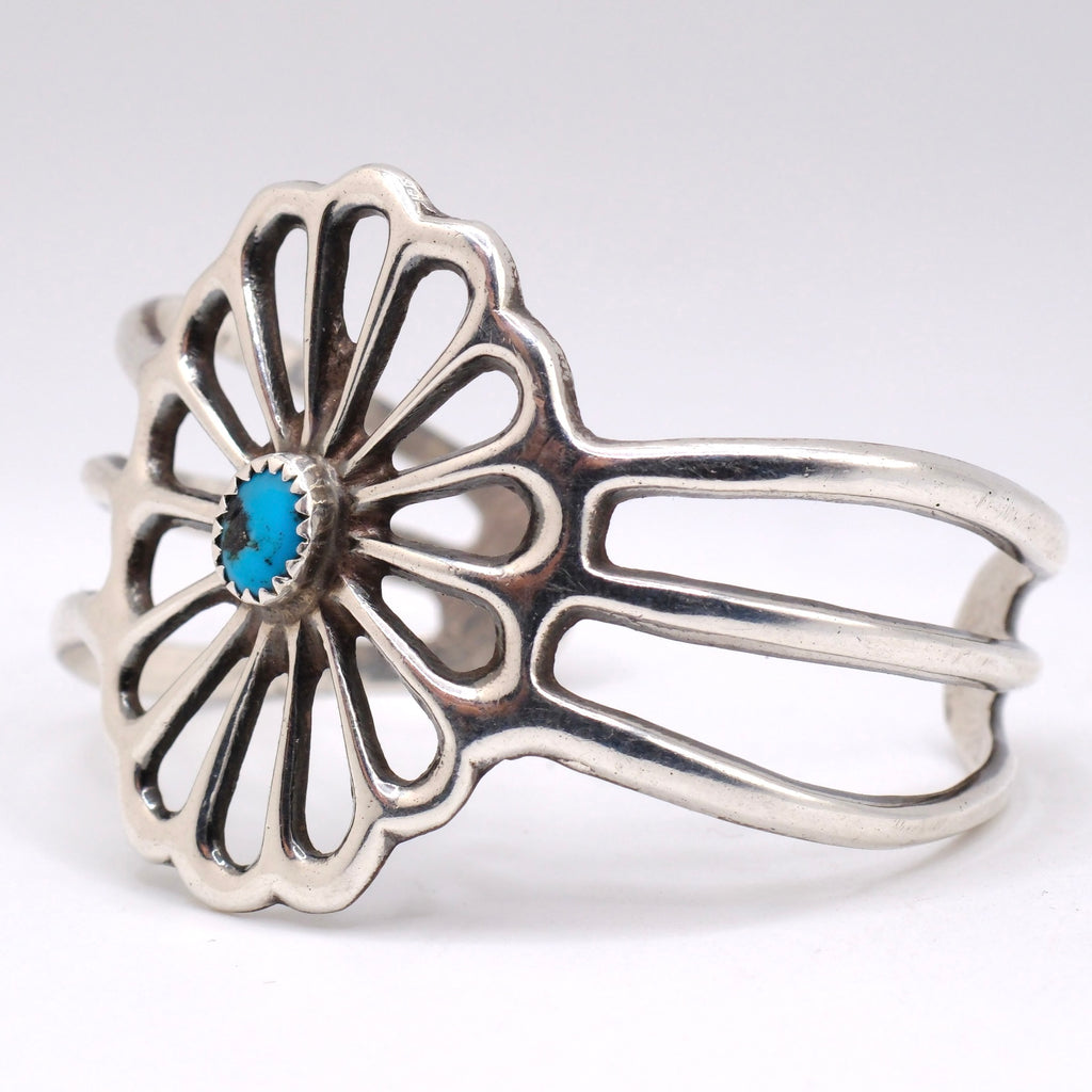 Vintage Sterling Turquoise Sandcast Cuff Bracelet