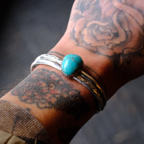 Vintage Sterling Turquoise Cuff Bracelet 7"