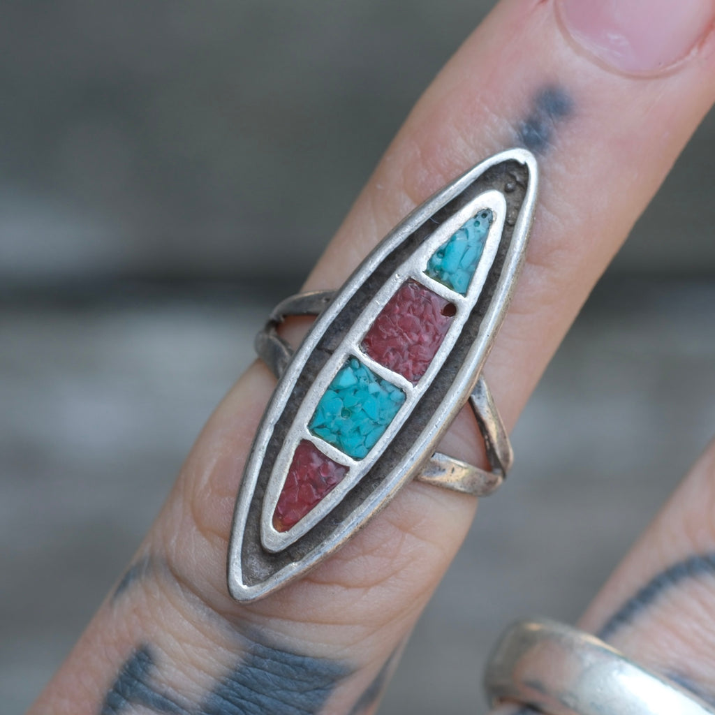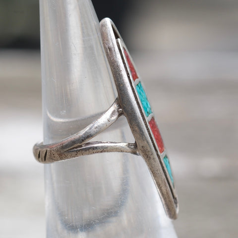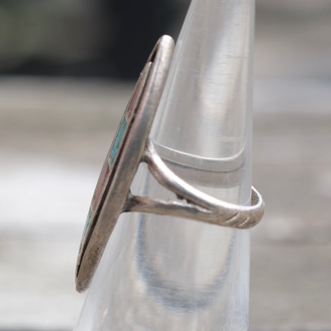 Vintage Sterling Turquoise and Coral Inlay Ring