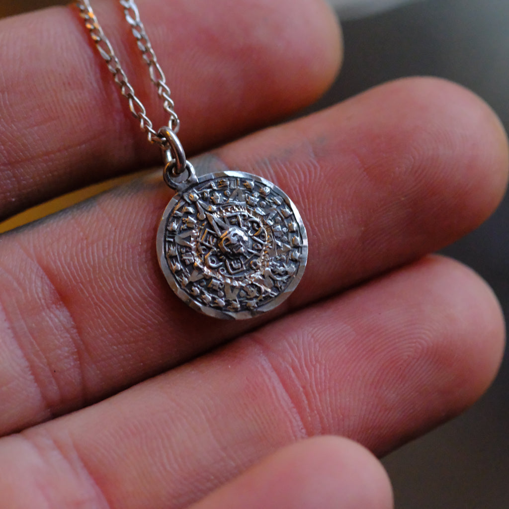 Vintage Sterling Aztec Calendar Necklace