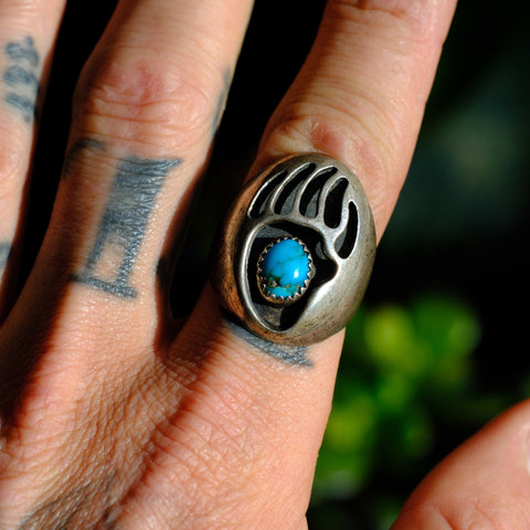 Vintage Sterling Turquoise Bear Paw Ring 9.5