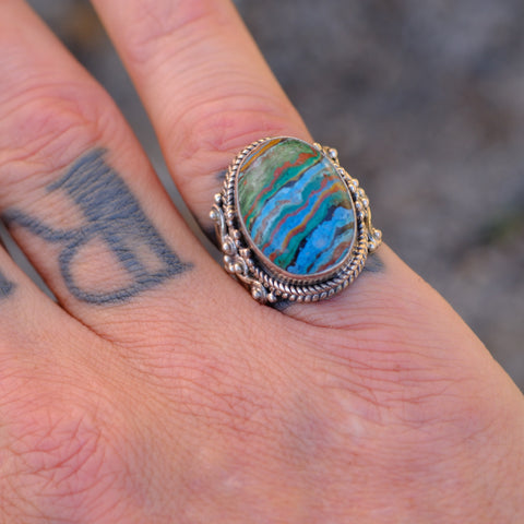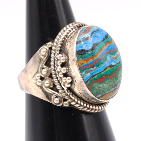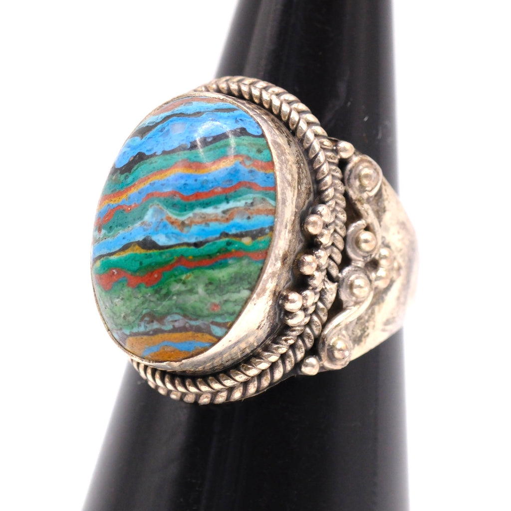 Vintage Sterling Rainbow Calsilica Ring 6.5