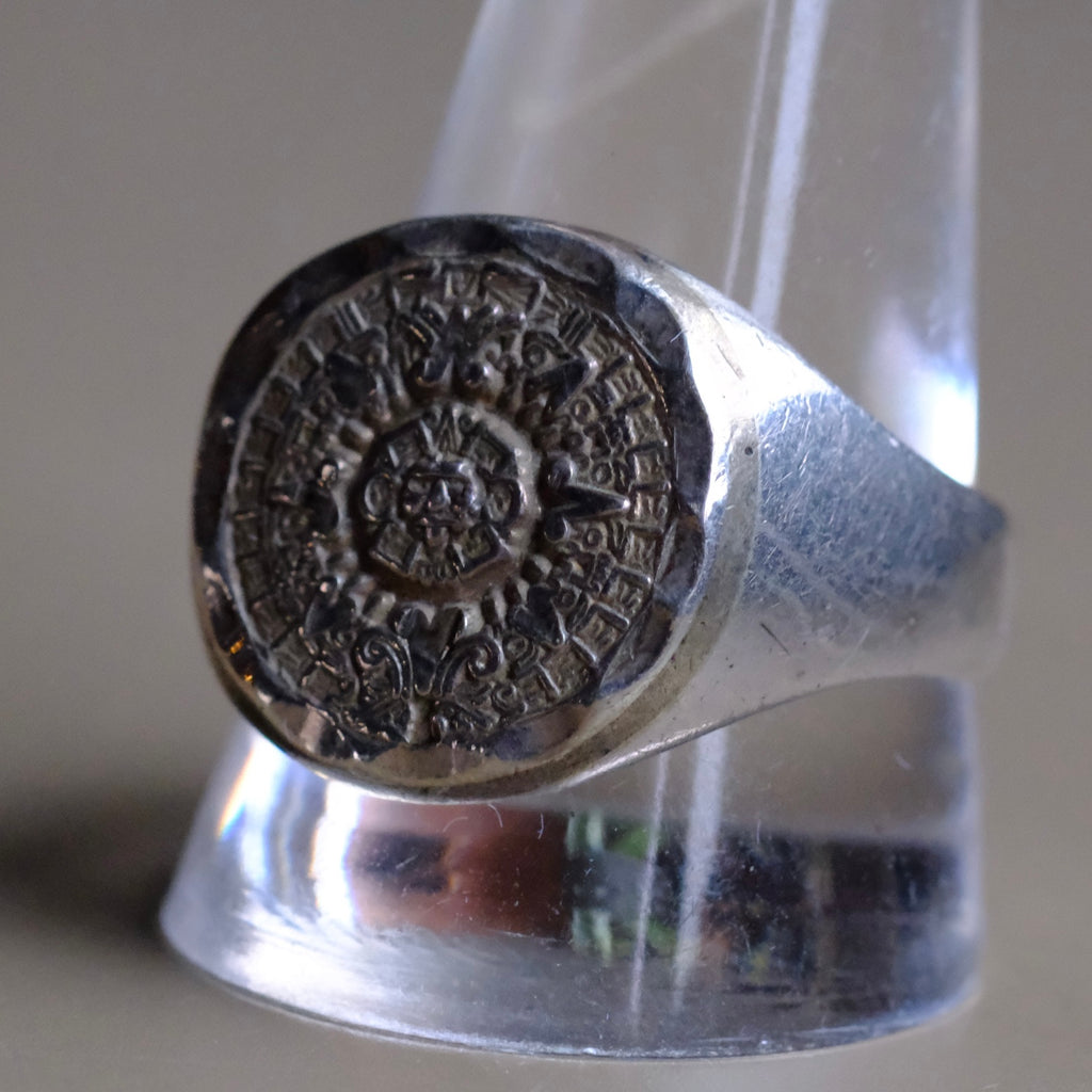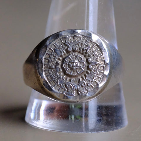 Vintage Sterling Aztec Calendar Ring